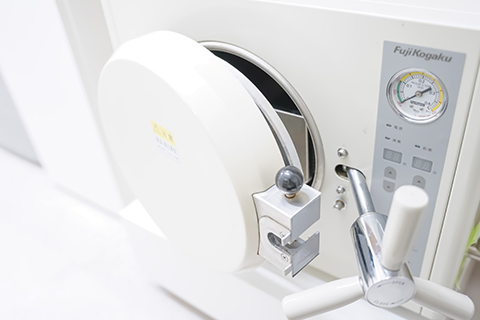 歯を切削する際に使用する器具専用の滅菌器を併用し、複雑な構造の器具の細部まで逃さず滅菌消毒を行っています。